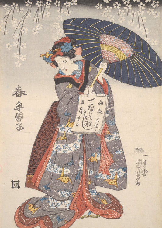 Ichikawa Sandanji I as Akiyama Kii No maki amidst flames (centre panel) - Art print