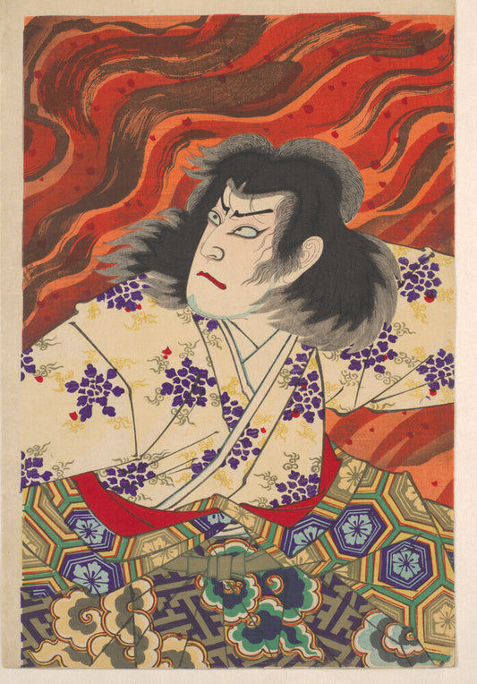 Ichikawa Sandanji I as Akiyama Kii No maki amidst flames (centre panel) - Art print