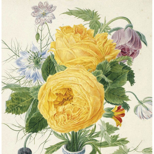 Yellow Roses with Love-in-a-Mist - Greetings card