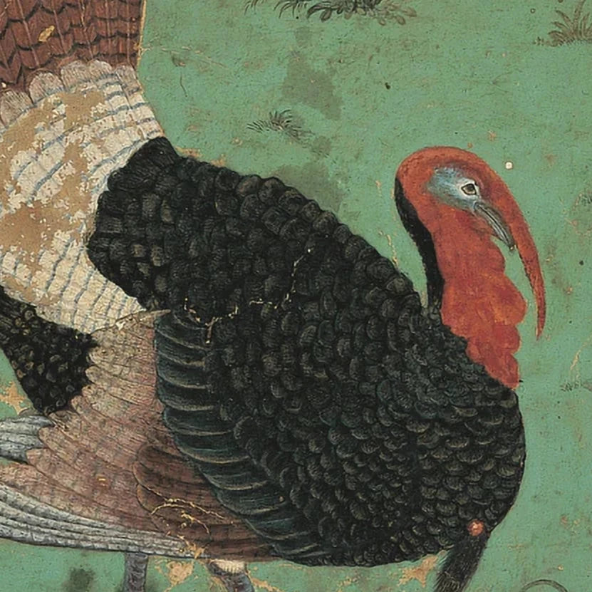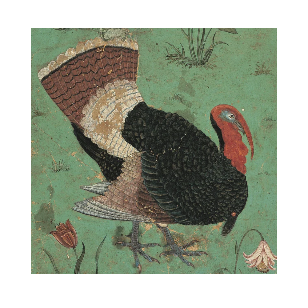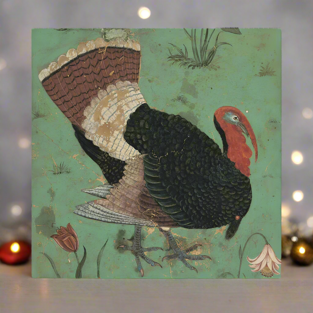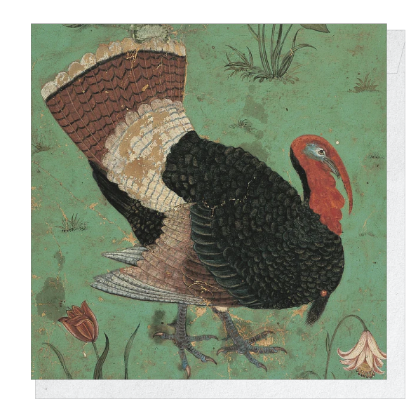 Pack of ten cards with a magnificent turkey, taken from a miniature painting produced in Agra in modern day India. These cards are a fun alternative to the usual Christmas winter scenes, and are also suitable for season's greetings at Thanksgiving.