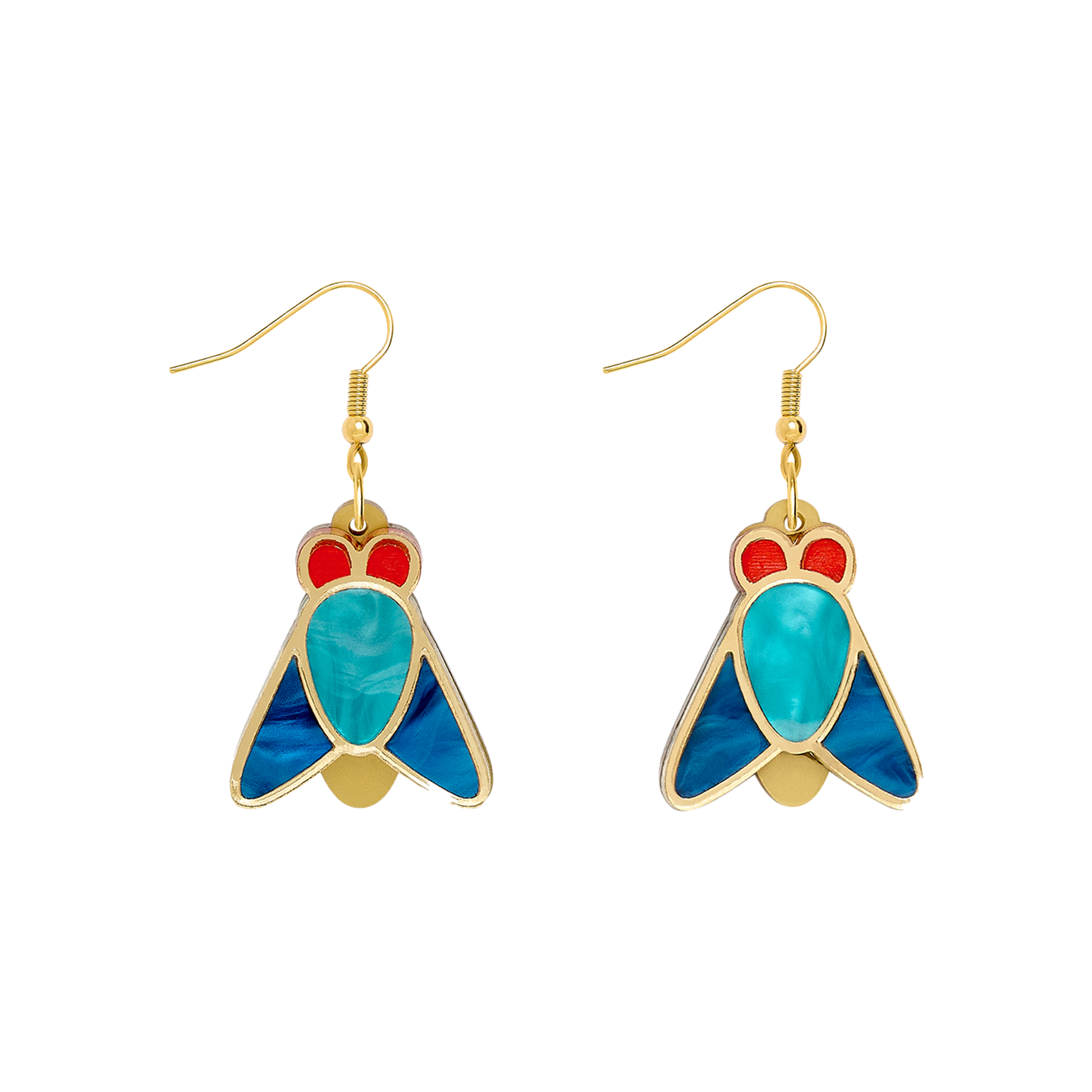 Tatty Devine are known for their original, fun, and above all creative jewellery, all designed and crafted in their London studio. Tatty Devine's art jewellers have combined jewel-blue and gold acrylic with hand-inked red details to create a striking pair of unique drop earrings that celebrate the artistry of Egypt’s New Kingdom.
