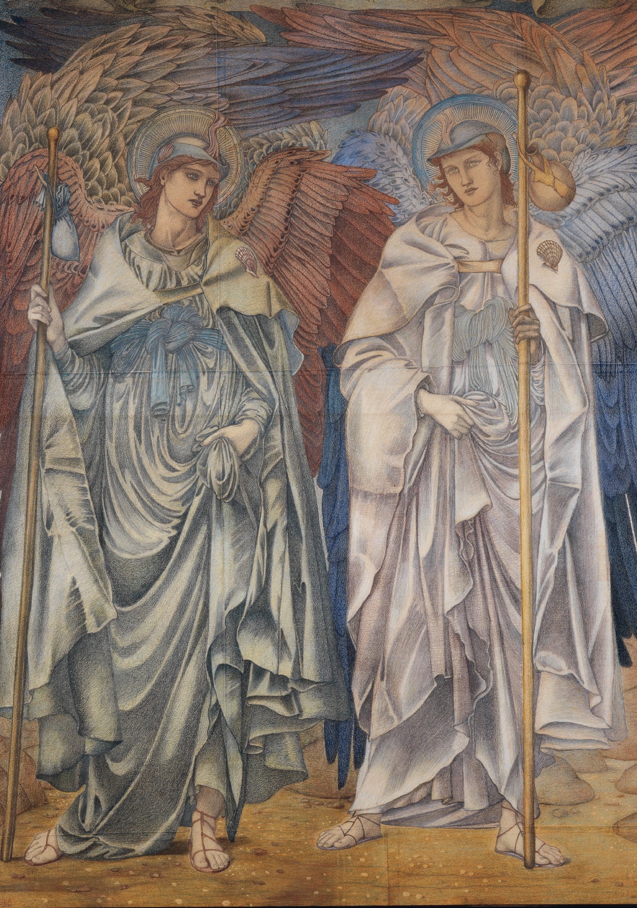 A new Christmas card for 2024. Pre-Raphaelite artist Edward Burne-Jones created this scene 'The Ministry of Angels' as a design for stained glass windows at Salisbury Cathedral. These artworks are from the collection of the Fitzwilliam Museum.