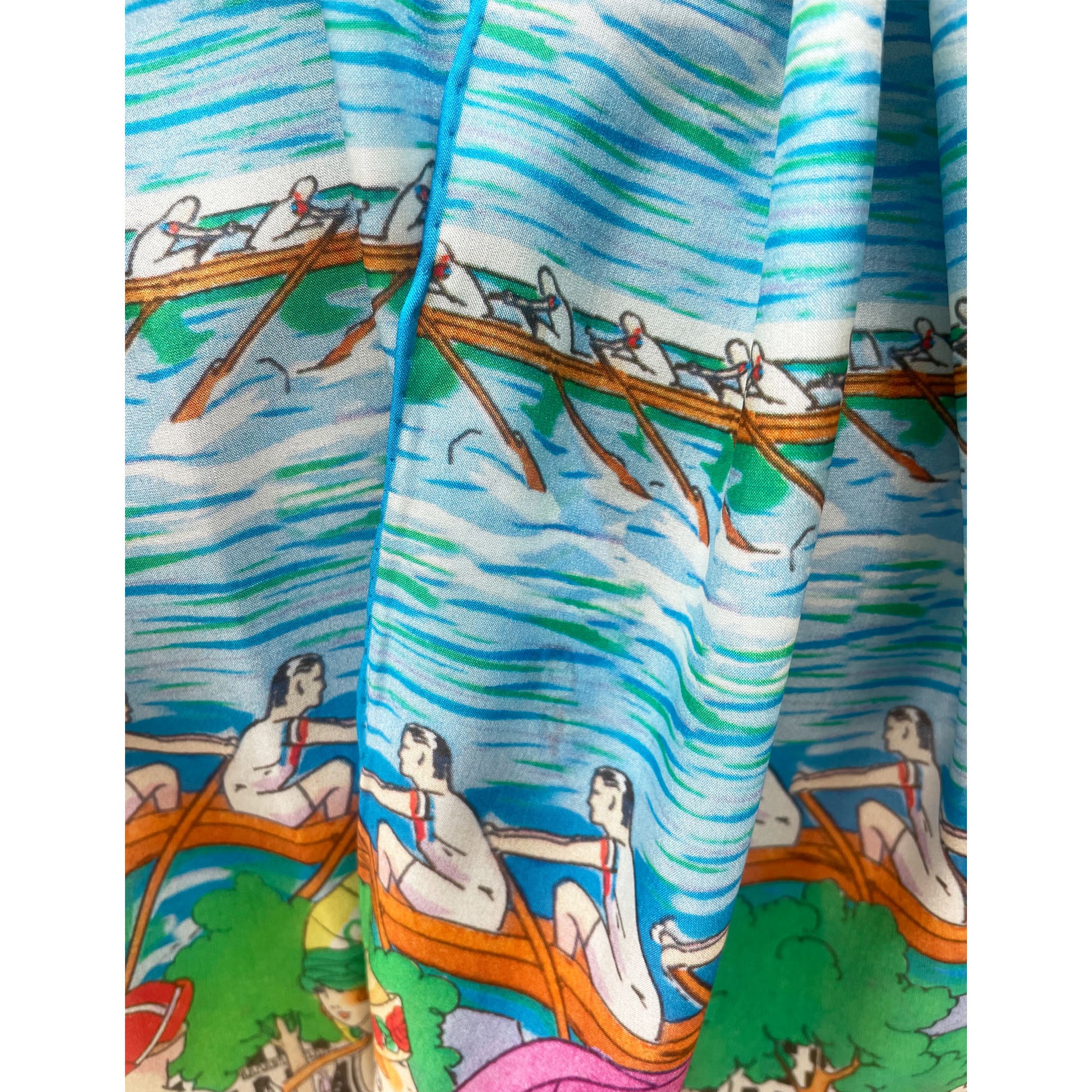 This 1920s design was inspired by French fashion magazine Art-Gout-Beaute, June 1924. The centre spread shows the rowers on the River Seine, observed by an array of stylishly attired Parisians.