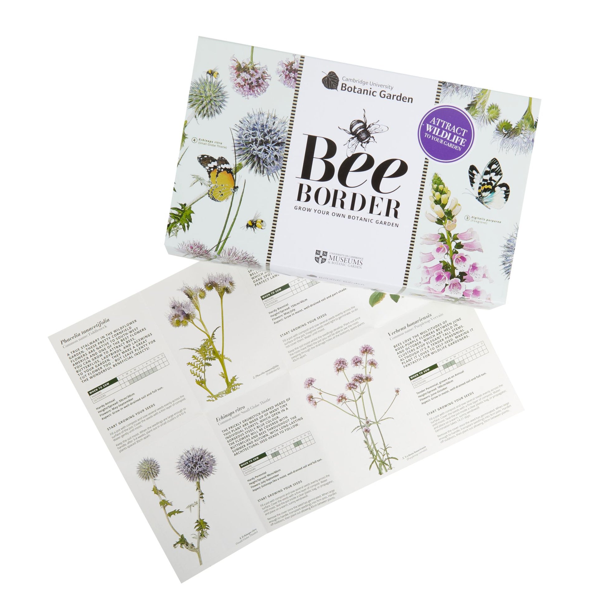 The Bee Borders, situated in front of the Victorian glasshouses at Cambridge University Botanic Garden, are planted with a fine selection of flora that particularly appeals to our industrious insect friends. This beautifully designed seed kit contains all you need to start growing five of the flowering plants that grow in the Bee Borders: foxglove, chives, fiddleneck, purpletop vervain, and globe thistle. The illustrated grow guide sheets are packed with useful information.
