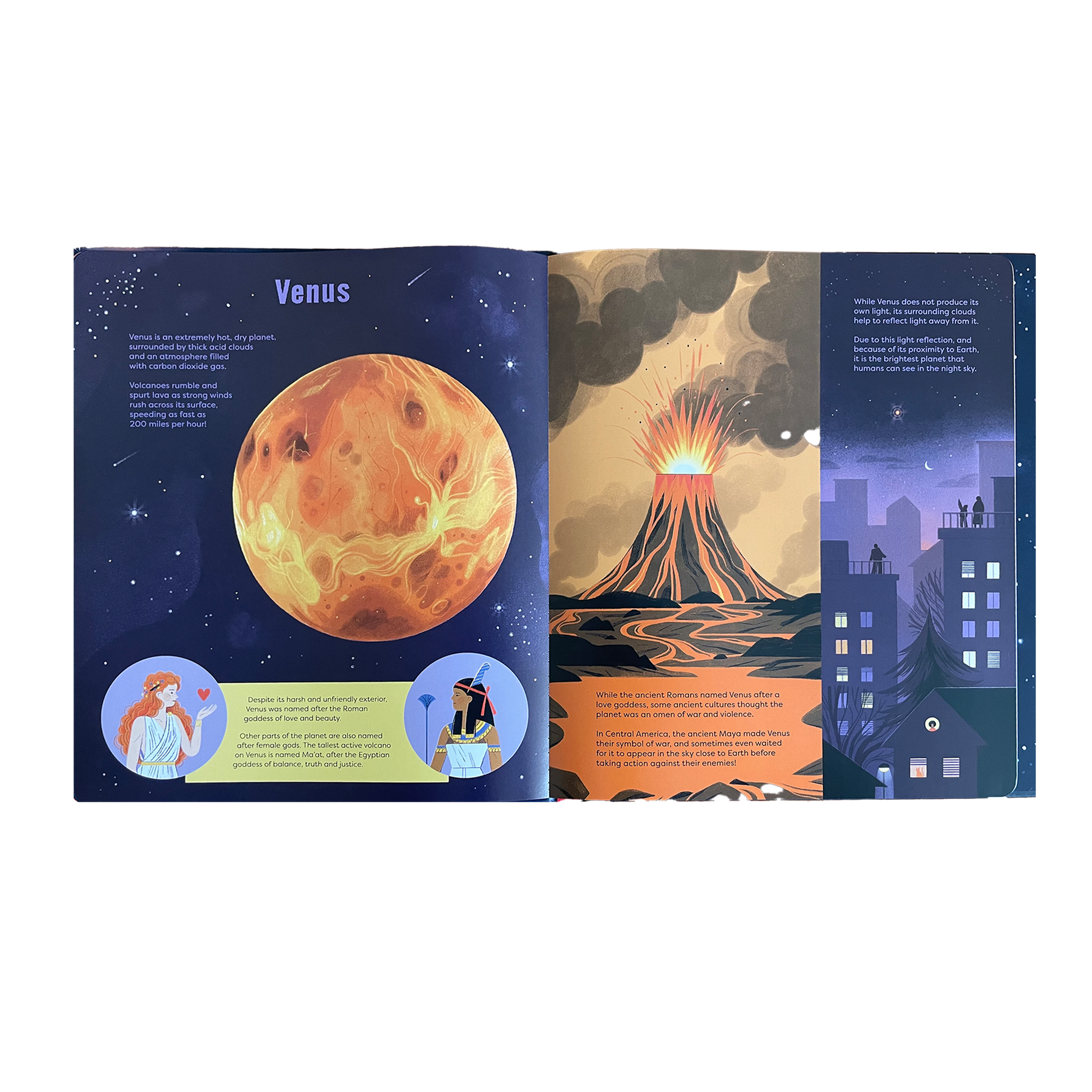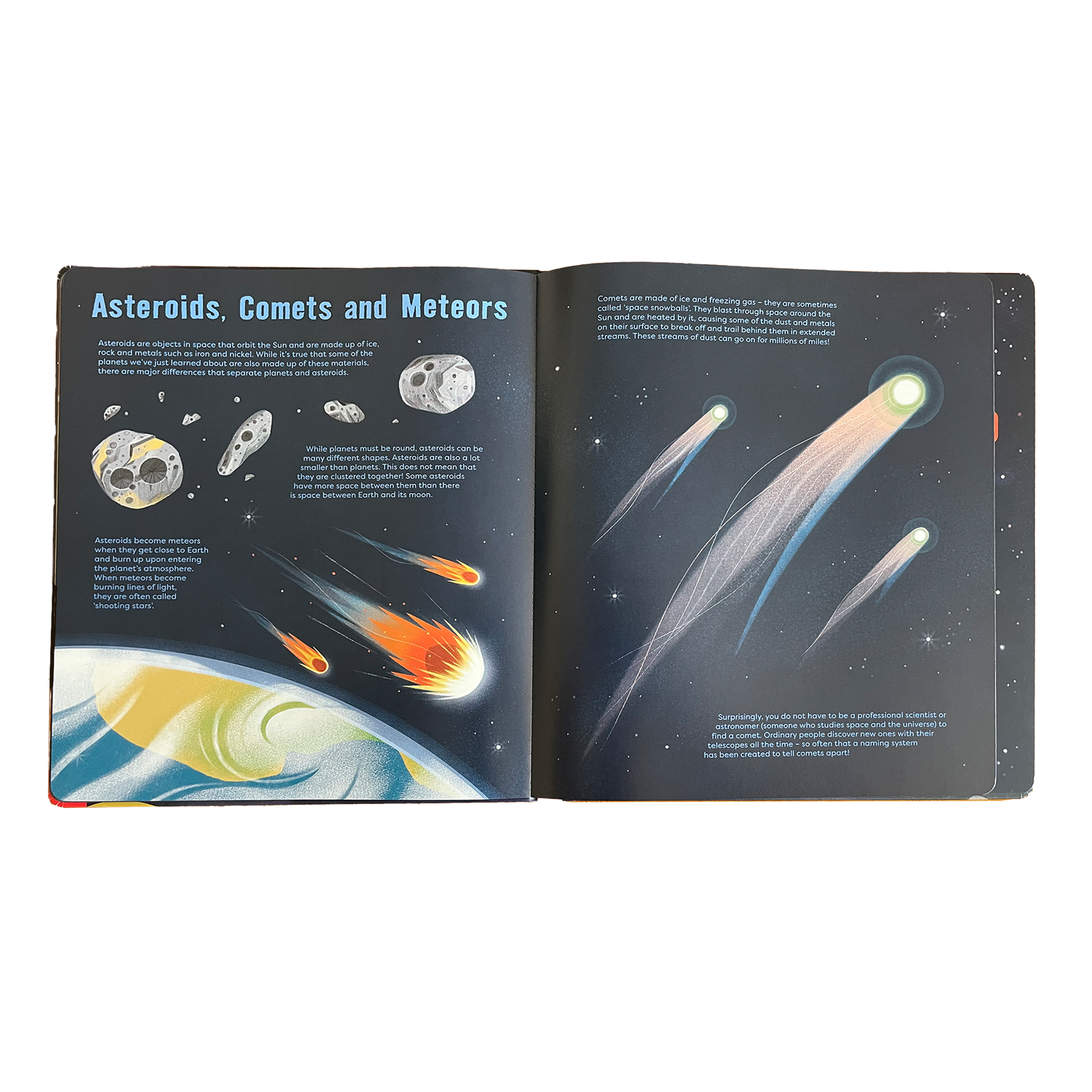 Explore fascinating text and stunning illustrations across pages covering everything from stars and asteroids to galaxies and black holes. Then turn to the back of the book to find 10 pages of press-out planets and the Sun that can be slotted together, hung up and displayed.