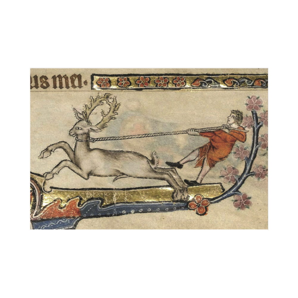 A quirky Christmas card displaying some of the fascinating and idiosyncratic marginalia from the Macclesfield Psalter, an elaborate illuminated manuscript now in the collection of The Fitzwilliam Museum.