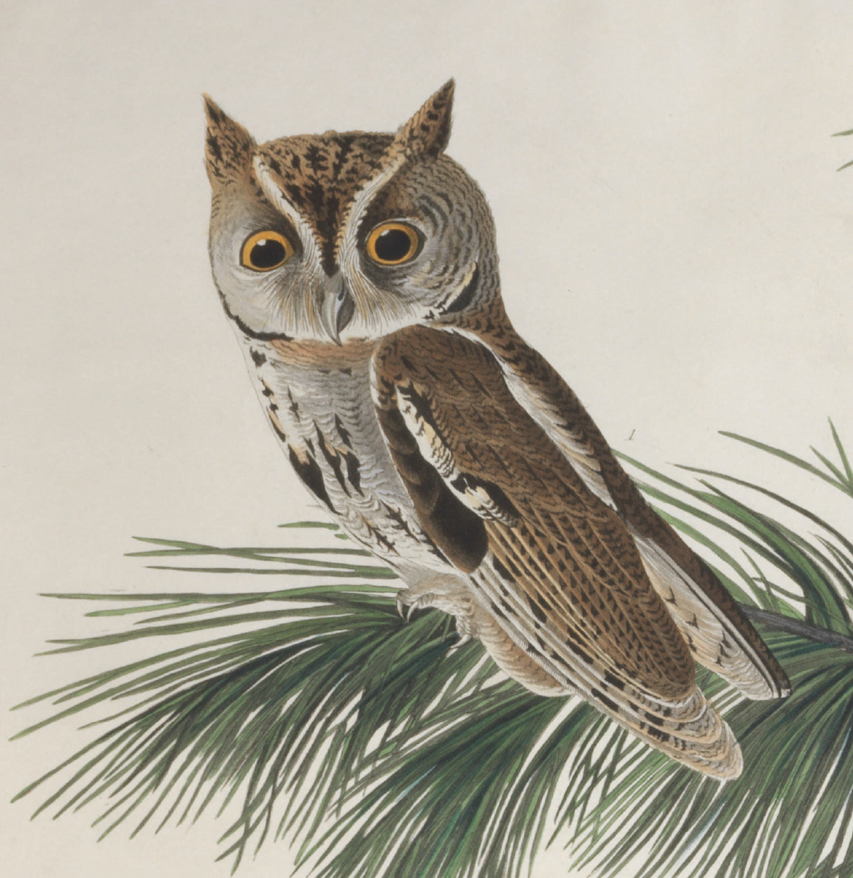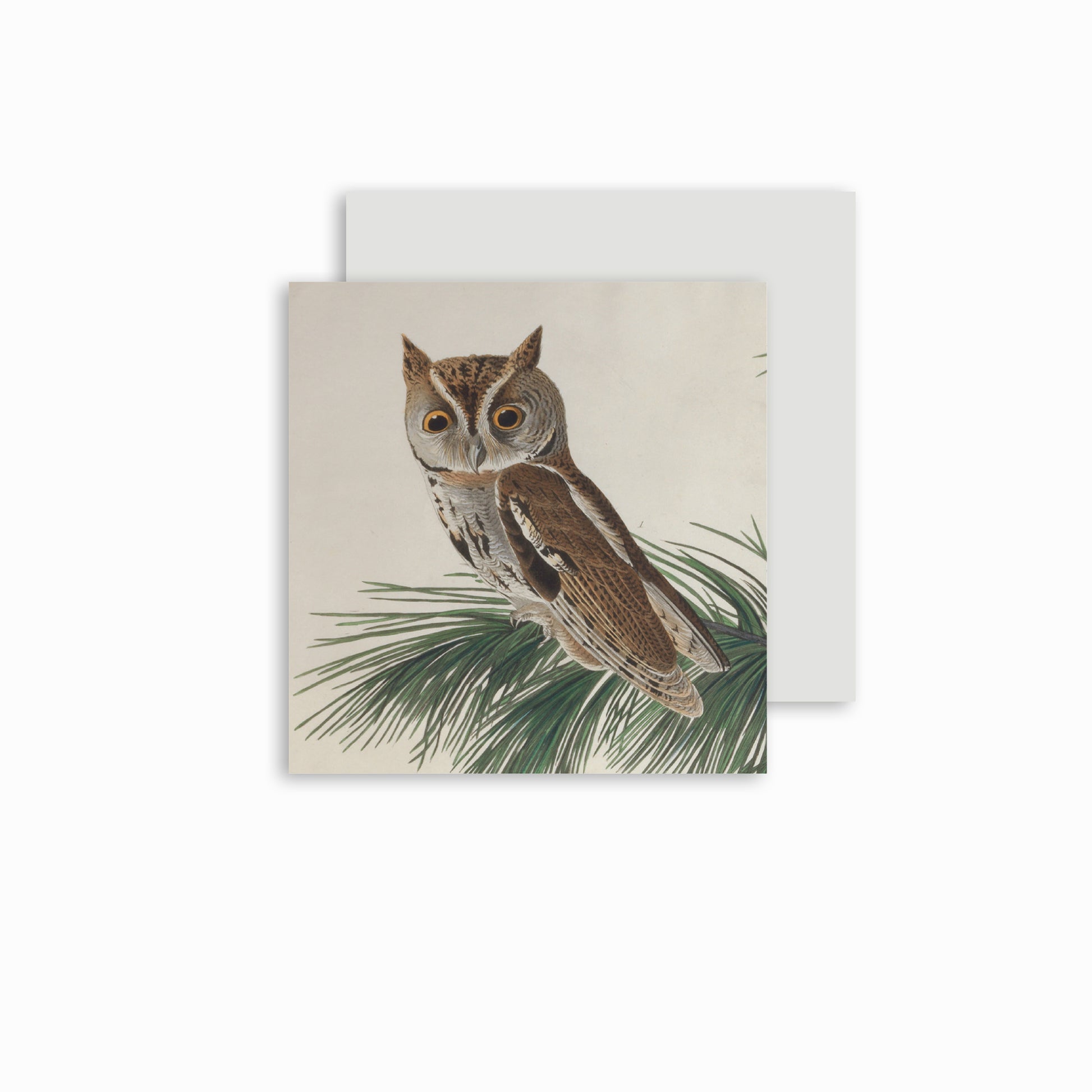 New for 2022. A little owl sits amongst the leaves of a fir tree, at rest but alert. A detail from John James Audubon's ornithological masterpiece The Birds of America, illustrated with his characteristic care and attention to detail.