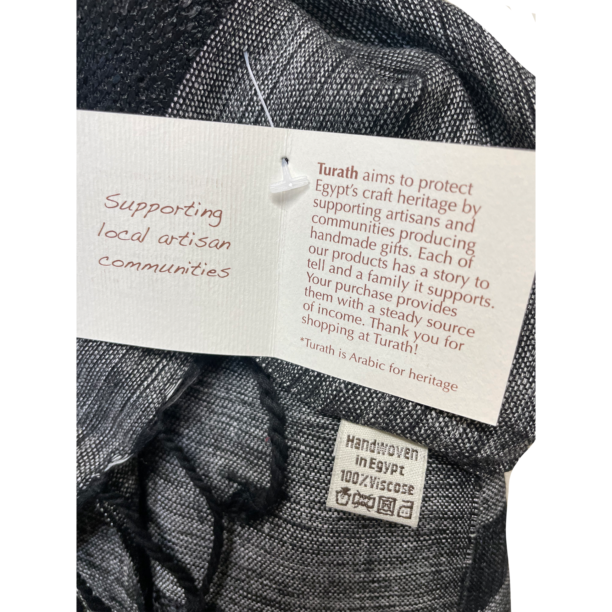 Our collection of beautiful scarves is handmade in Egypt and supports artisan communities. They have been created for us by Turath, an Egyptian company founded with the aim of preserving traditional handicrafts and providing artisans with a fair wage and means to sell their products. In Arabic, 'turath' means heritage or inheritance, and signifies the importance of handing down cultural practices from one generation to the next.