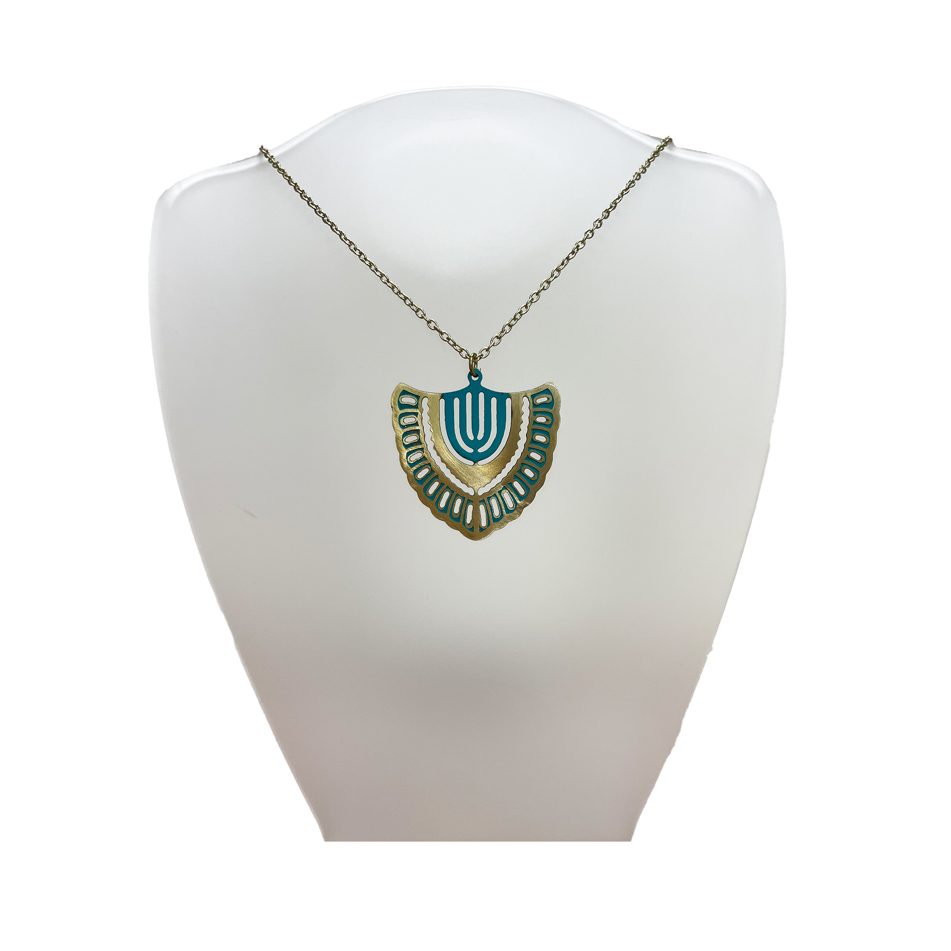 - Brass necklace with patina and enamel