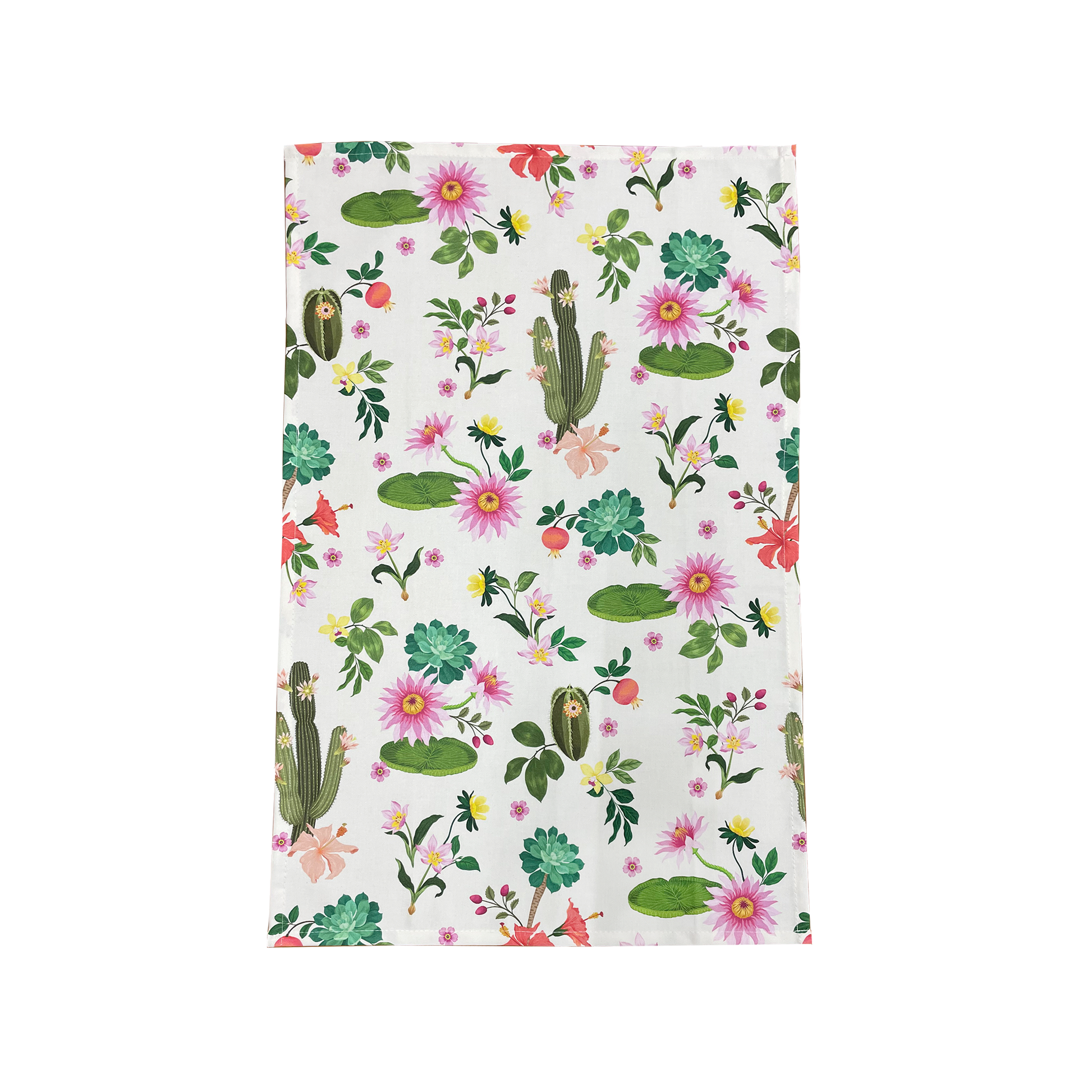 Part of the new Glasshouse range celebrating the flora and habitats of the glasshouses of Cambridge University Botanic Garden. This set of two cotton tea towels includes the beautiful giant water lily from the Tropical Wetlands house, and a sweet 'ditsy' design with little details from other Glasshouse species.