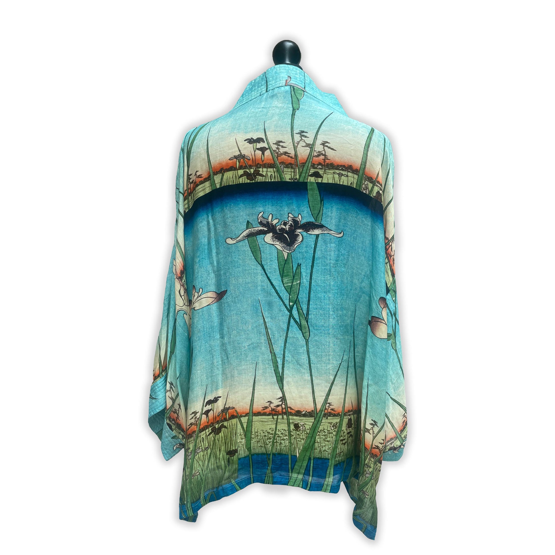 One of our most popular prints, now available as a soft, lightweight short kimono. The versatile style can be dressed up or down. A beautiful piece of clothing, exclusive to Curating Cambridge and the Fitzwilliam Museum Courtyard Shop.