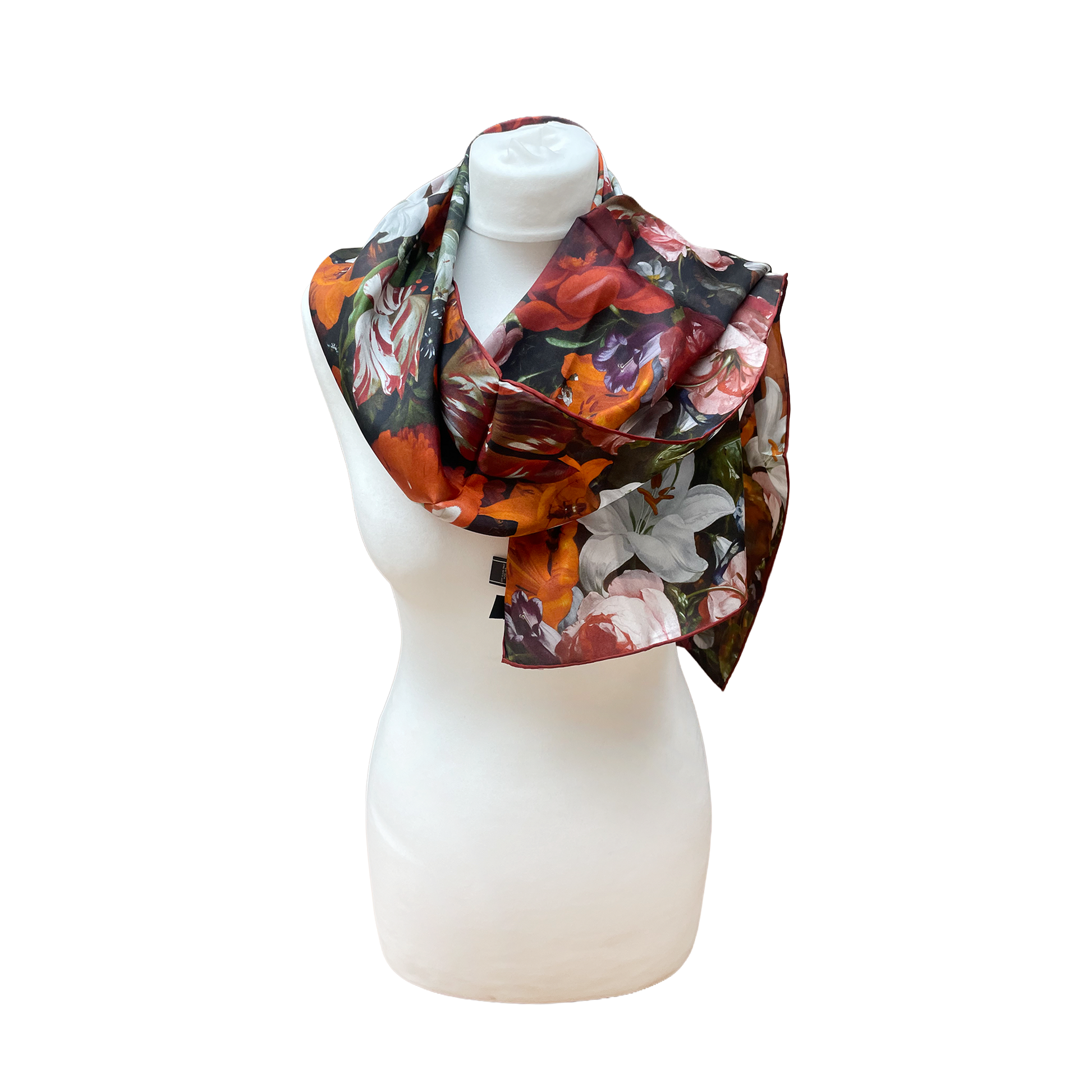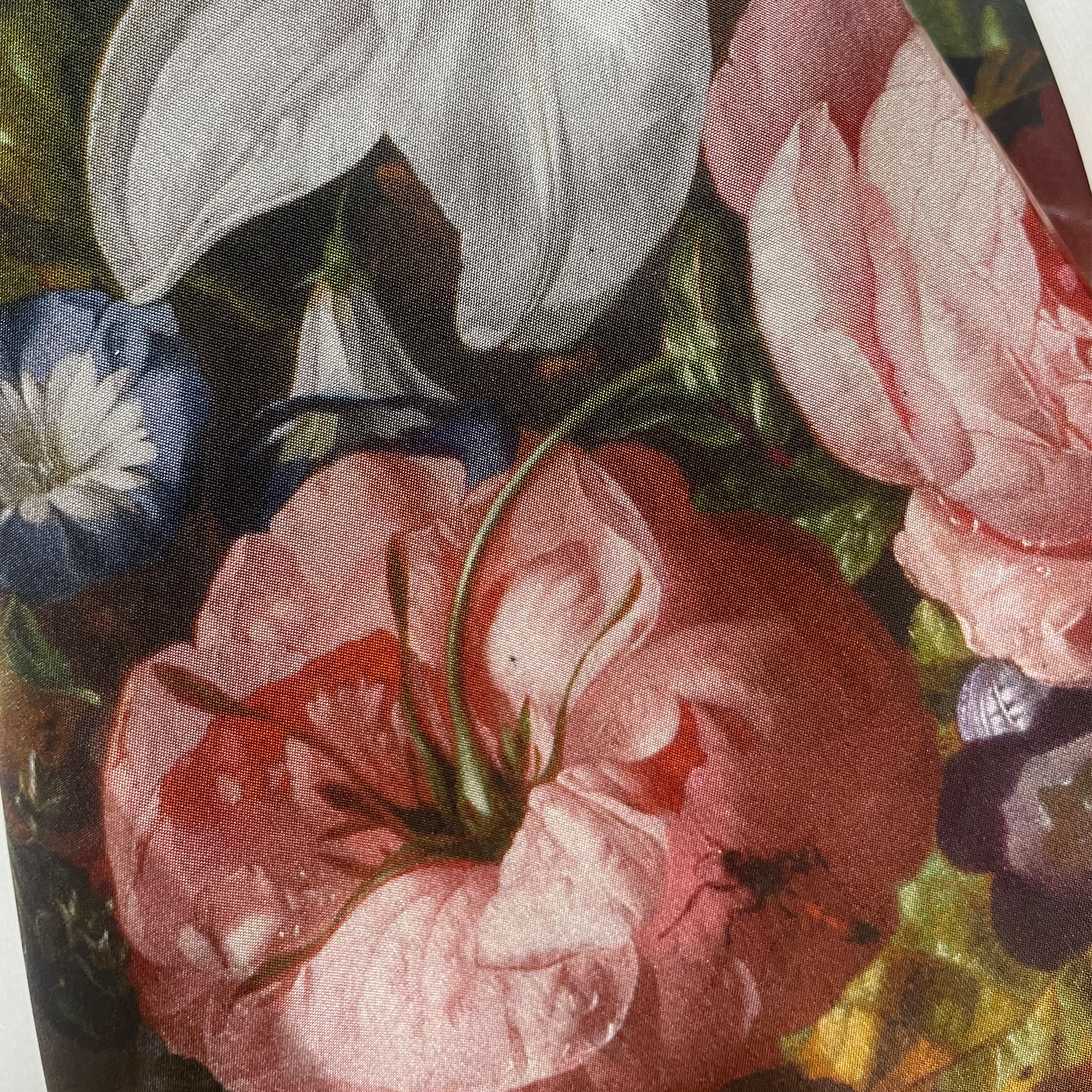 This beautiful scarf is inspired by the botanical paintings of Dutch artist Rachel Ruysch, who was working in the Netherlands during the Dutch Golden Age. The Fitzwilliam Museum has several paintings by Ruysch in its collection, forming part of the Broughton bequest of 1973.