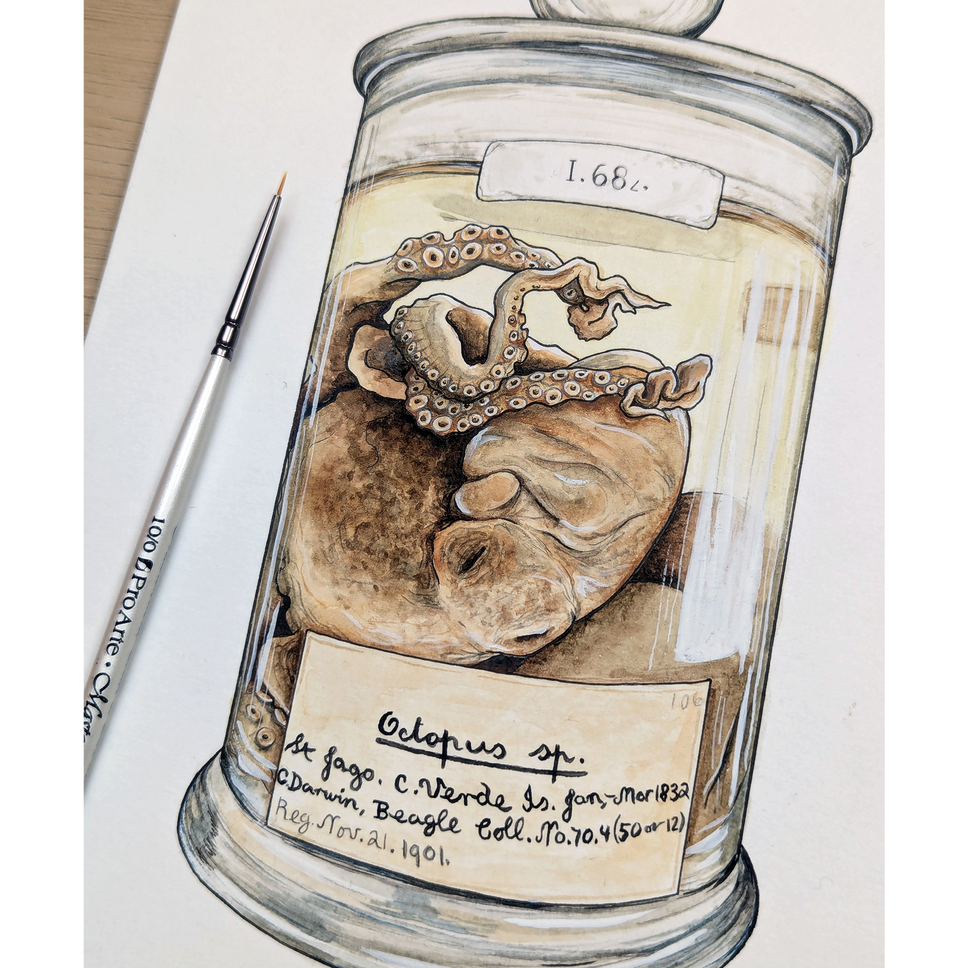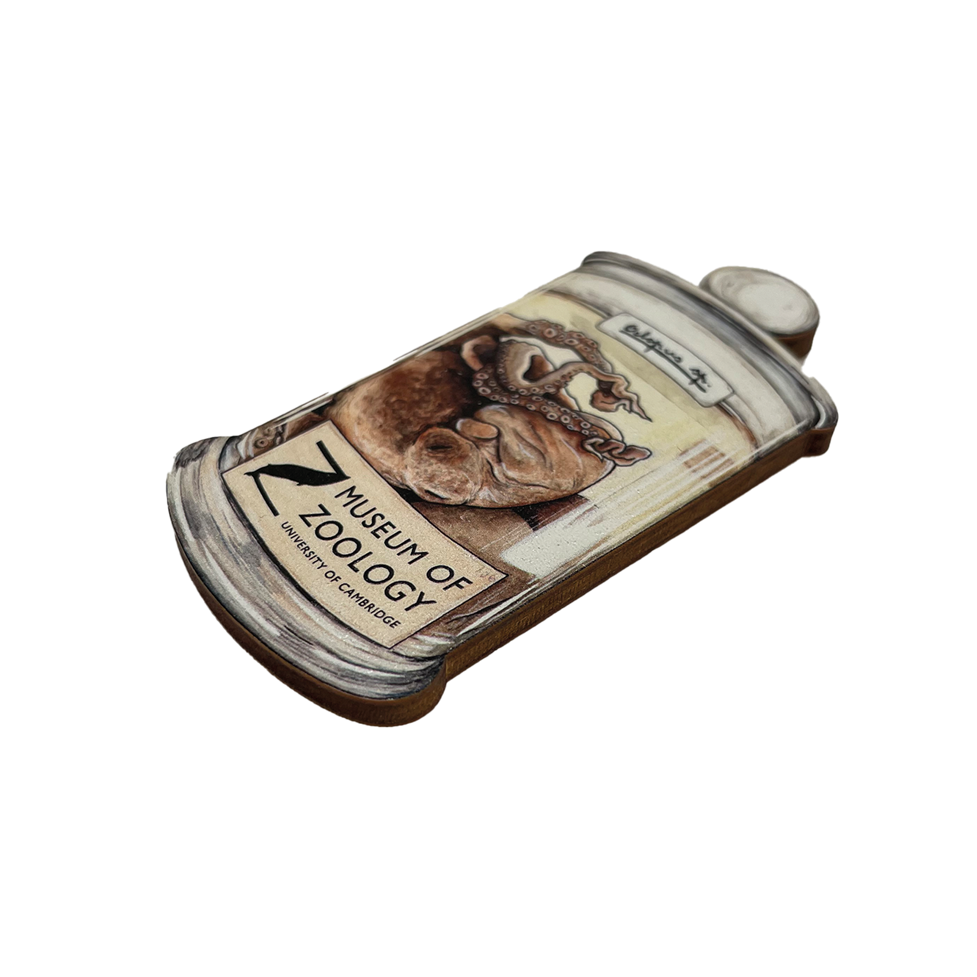 This quirky wooden magnet depicts an octopus specimen collected by Charles Darwin during the voyage of the Beagle. The original specimen can be seen at the University Museum of Zoology in Cambridge.
