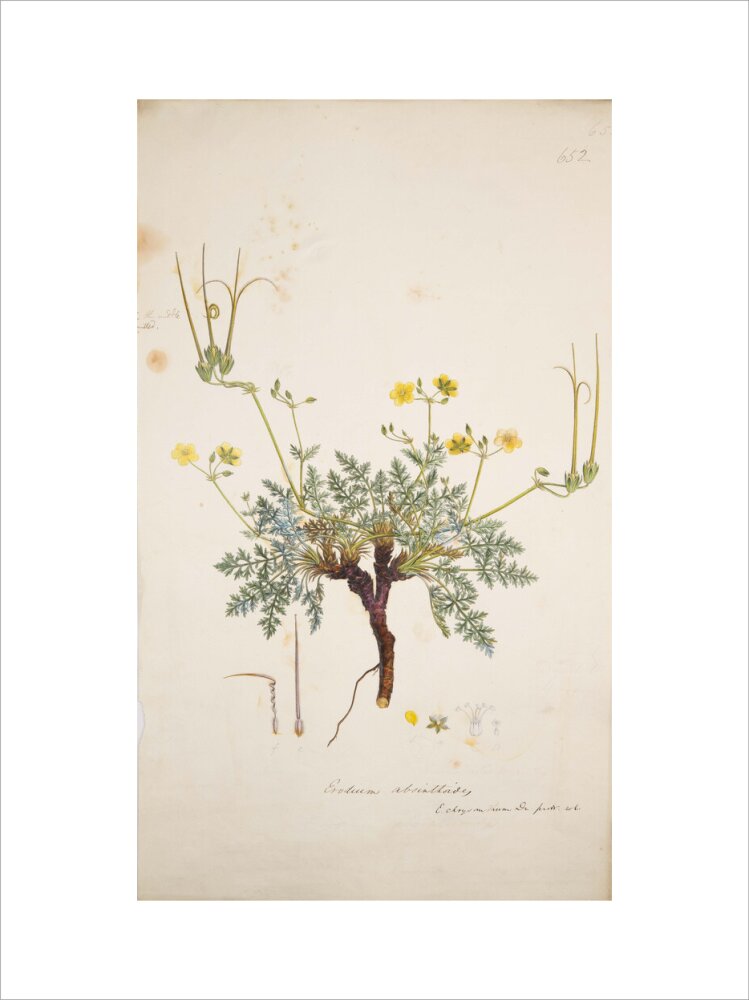 Ferdinand Bauer (drawing) and James Sowerby (engraving), Erodium absinthoides, early 19th century