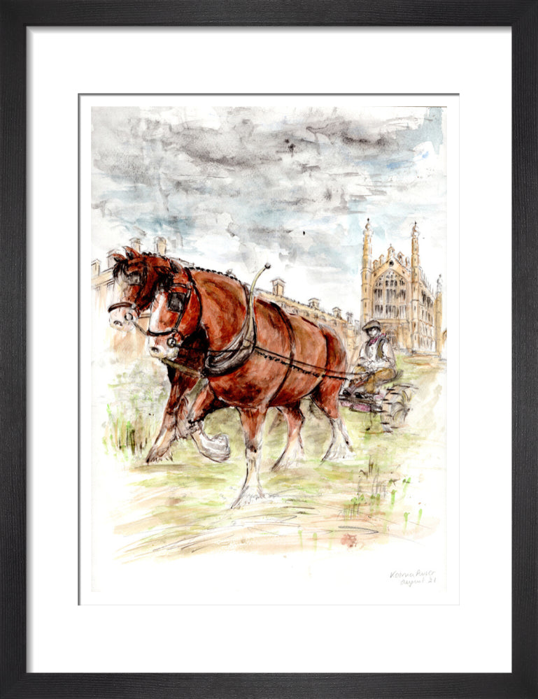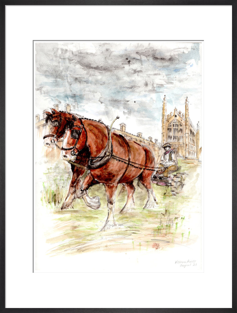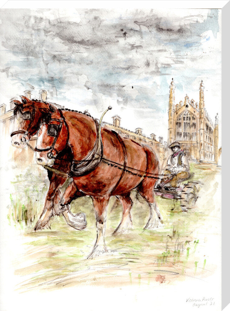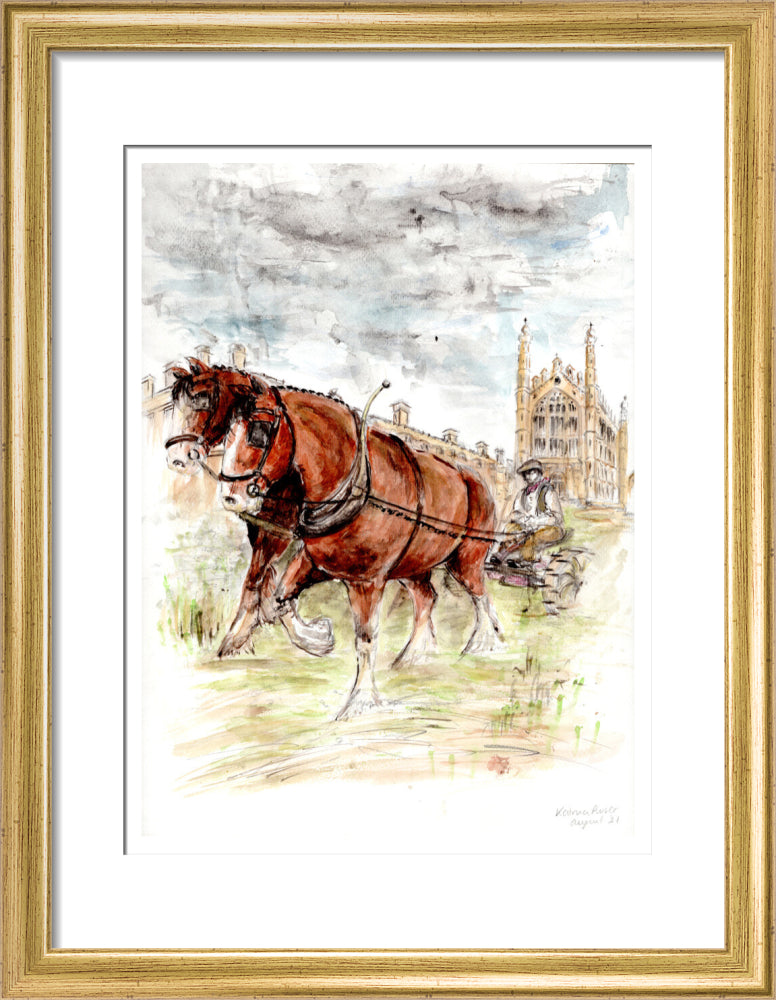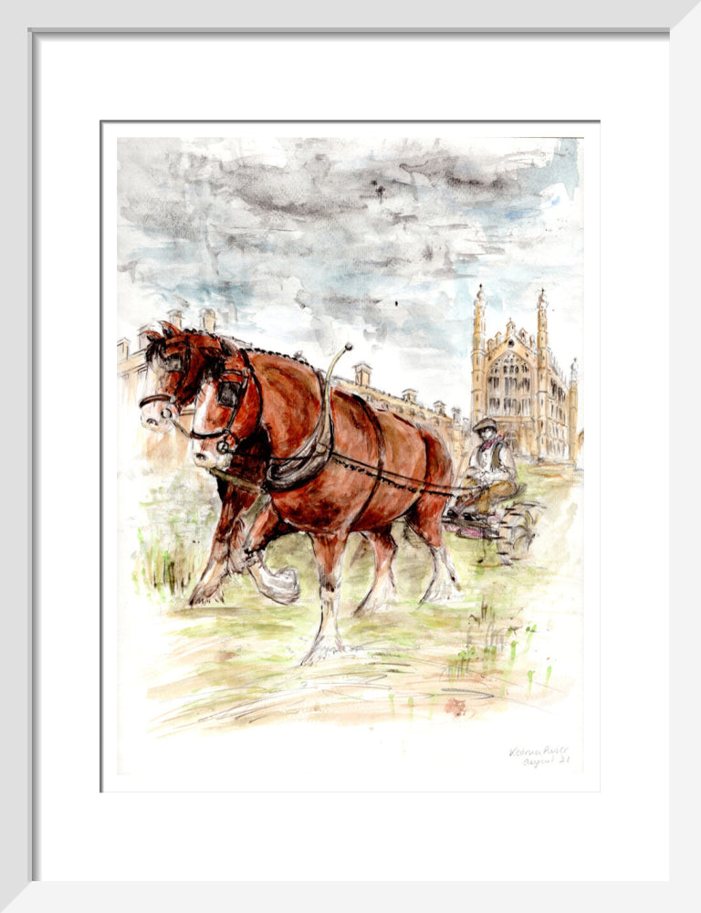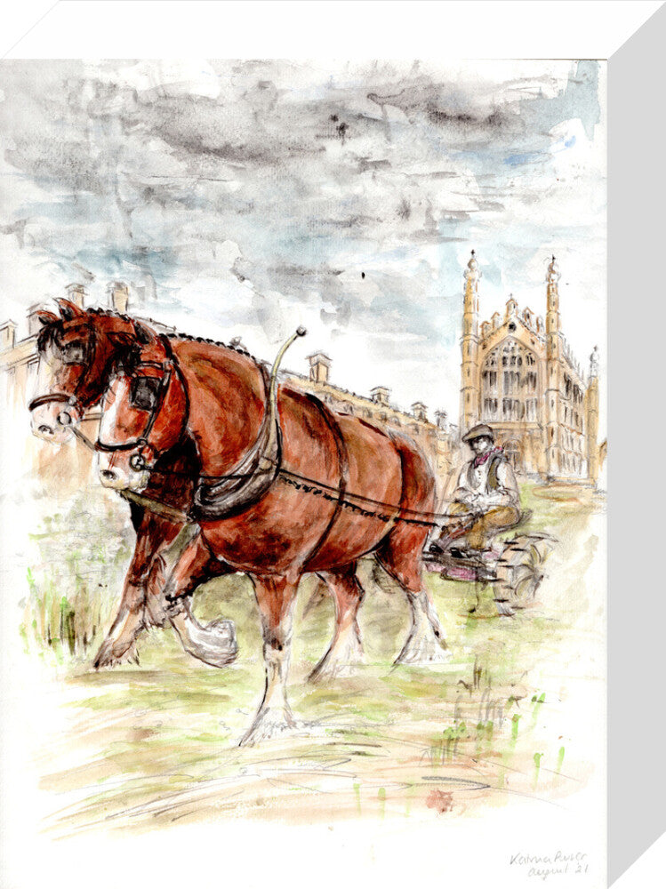 King's College Cambridge, Cutting the Wild Flower Meadow with Heavy Horses by Katrina Purser