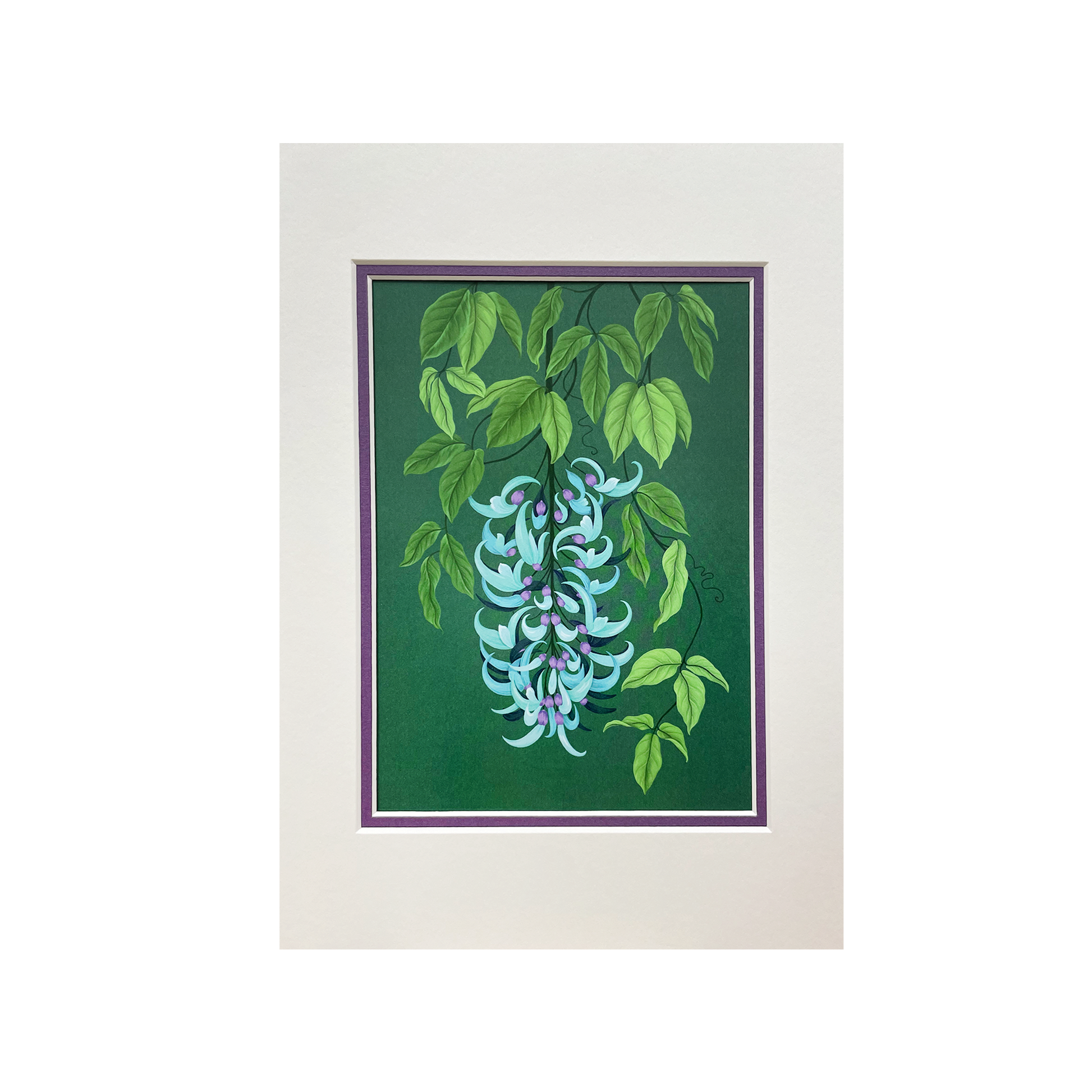 The Oceanic Islands print is part of our new collection reflecting the habitats and species of the Glasshouse Range at Cambridge University Botanic Garden. It depicts the beautiful jade vine, which fills the Tropical House with vibrant pendulous flowers during the early summer months.