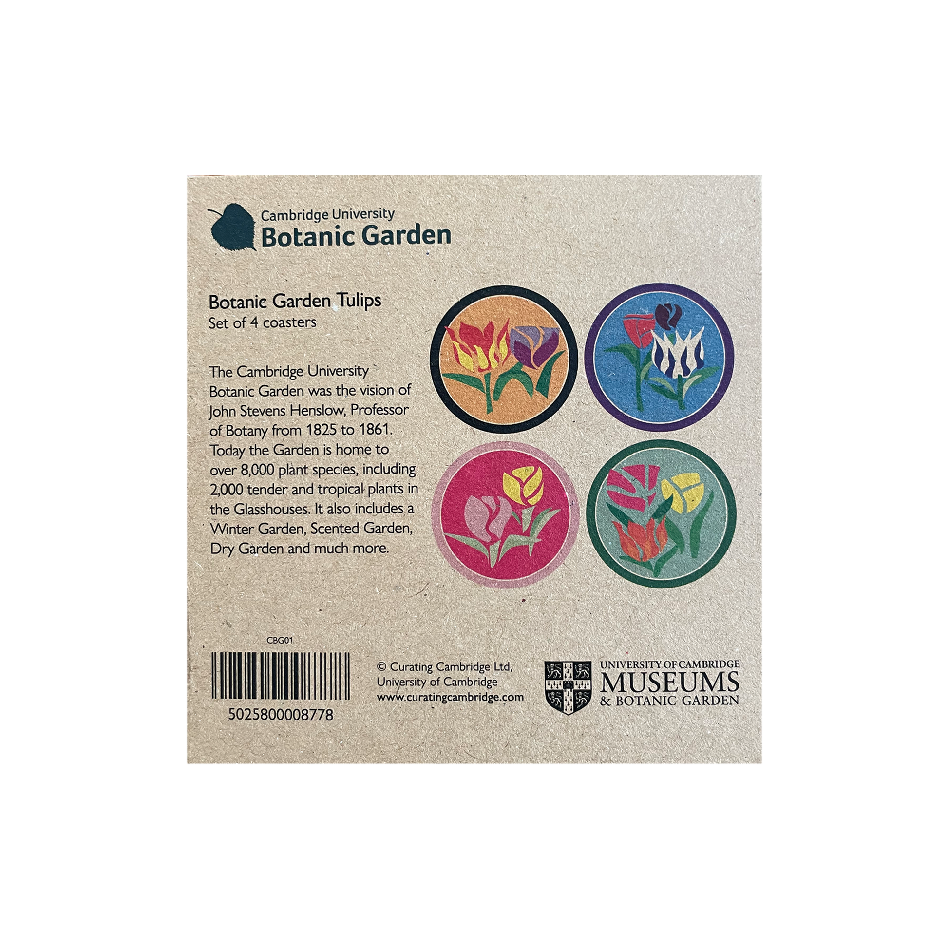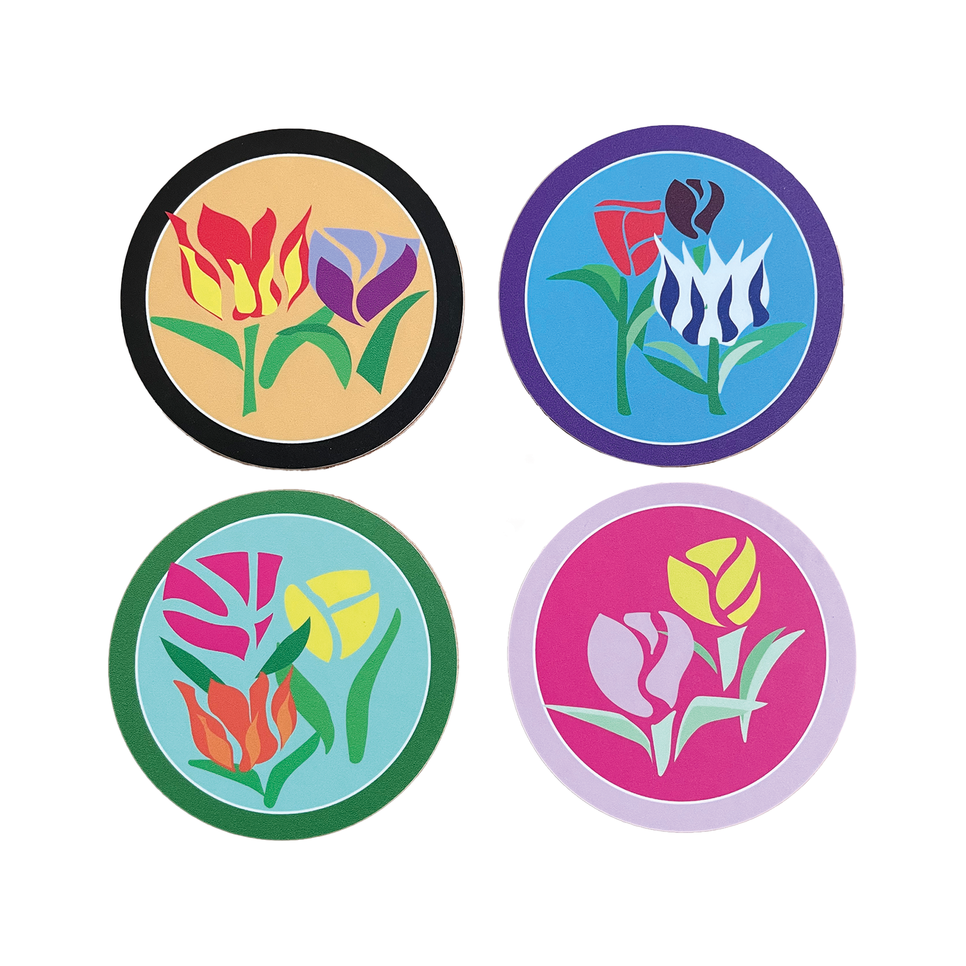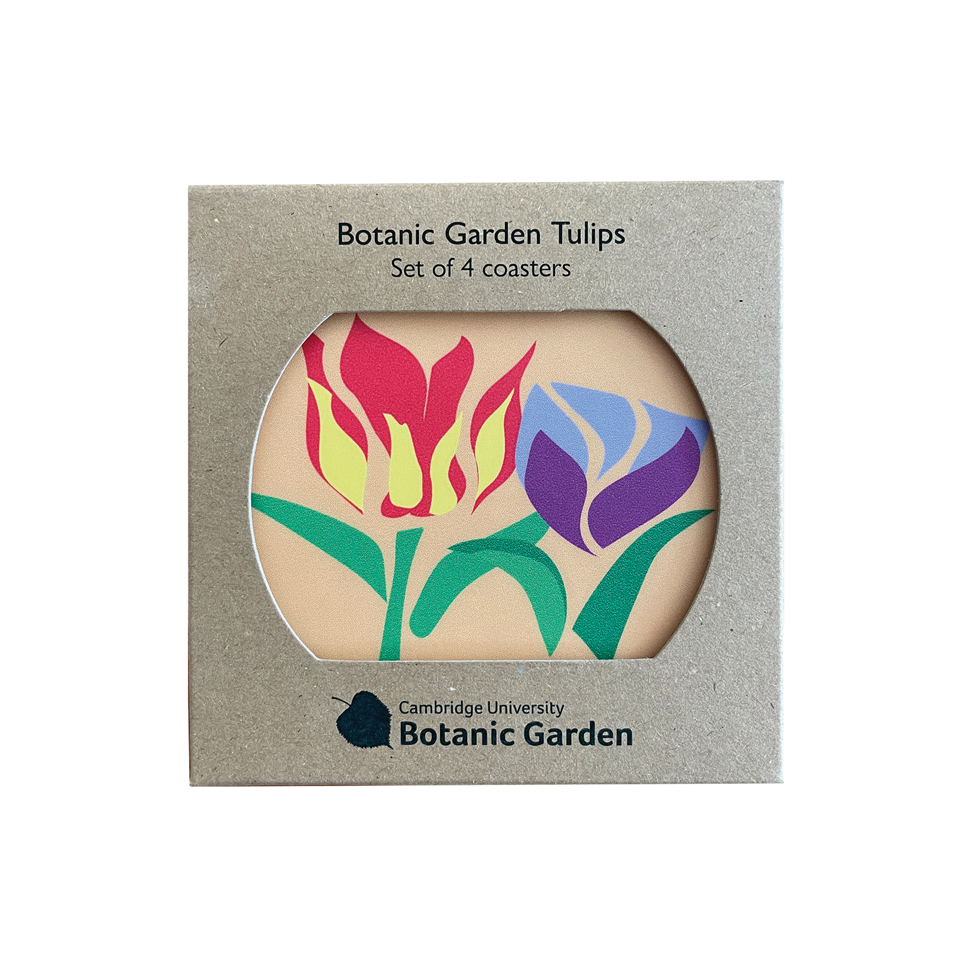Set of 4 Tulip coasters as part of the Tulip range for Cambridge University Botanic Garden.